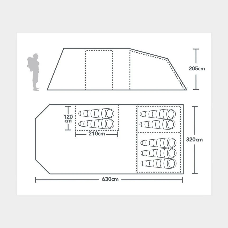 Complete with airflow ventilation, the air in the tent stays fresh and combines with the natural light from the clear window panels to give you a homely, liveable space. The bedrooms are darkened with Nightfall® technology to prevent rude awakenings from the early summer sun and come with a removable divider for adaptable space.