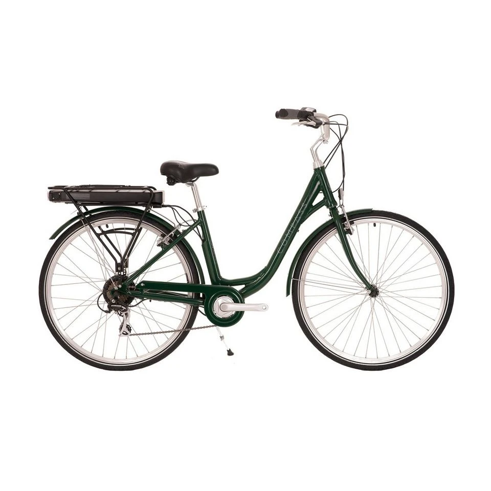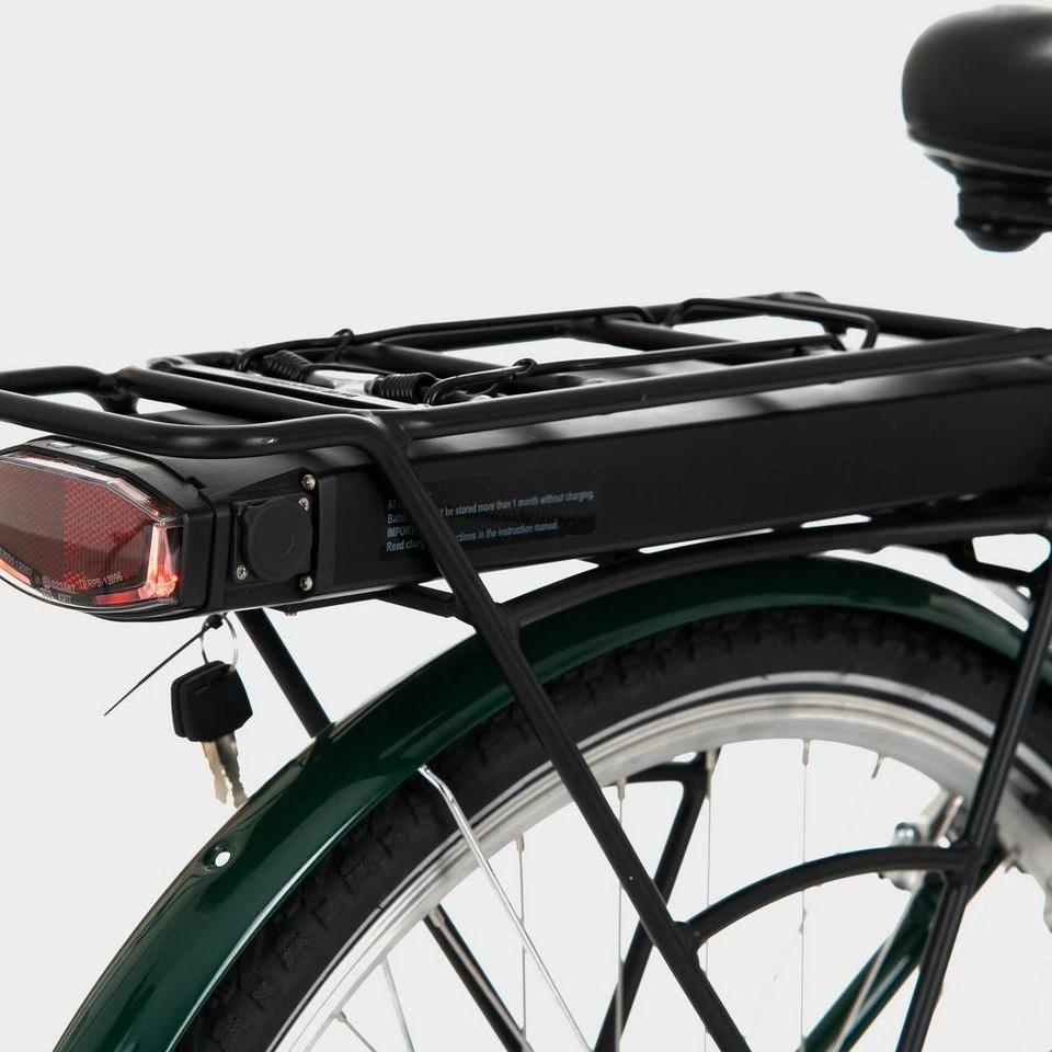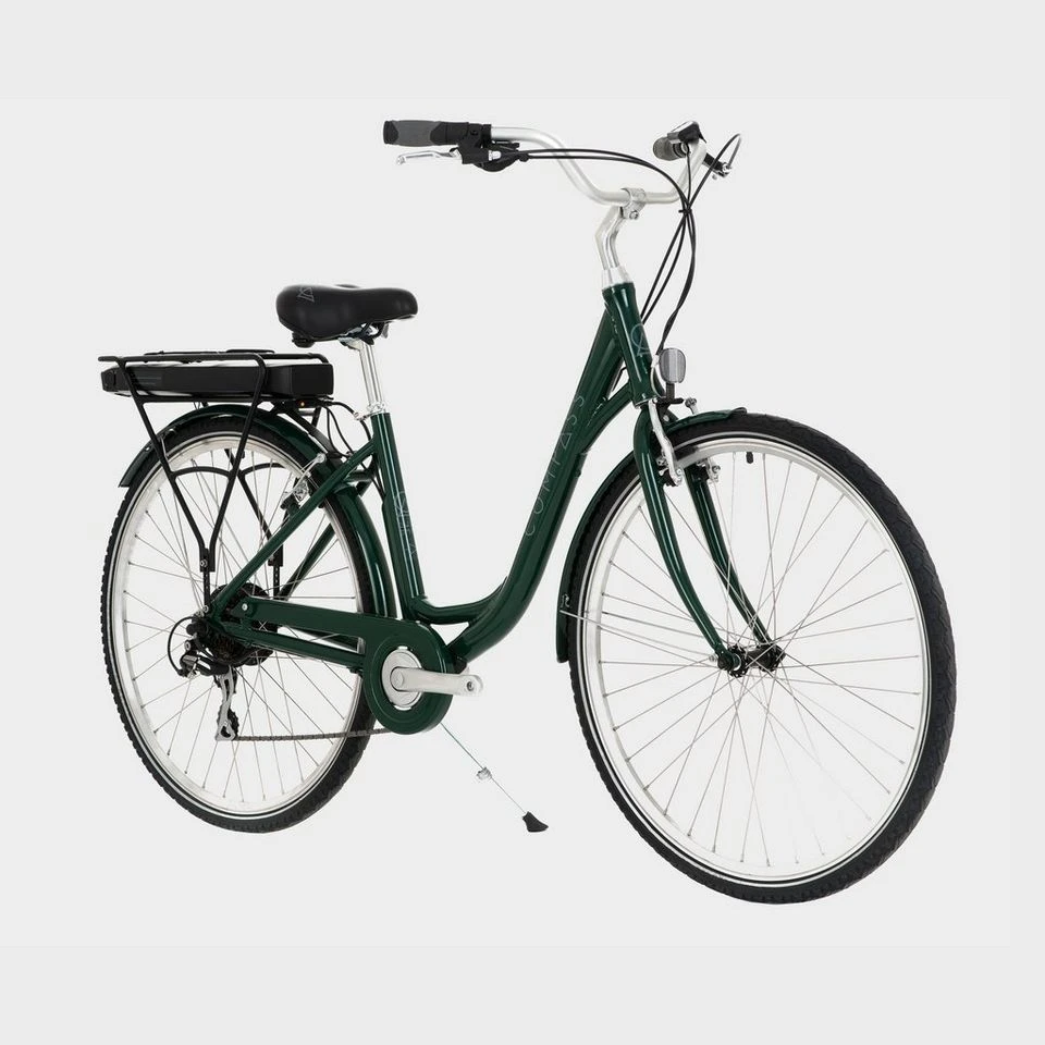 With an iconic Dutch style frame and useful accessories, the Compass Electric Town Bike gives you all that with electric assistance to help with getting around the city. The frame has a low step-over bar, for easy dismounting, whilst the 6 speed Shimano gear set will make the getting up hills easier. The hub motor gives you a top assisted speed of 15mph, with a range of 40 miles on a single charge. And there’s a walk assist mode so if you do have to push the bike it will lend you hand.