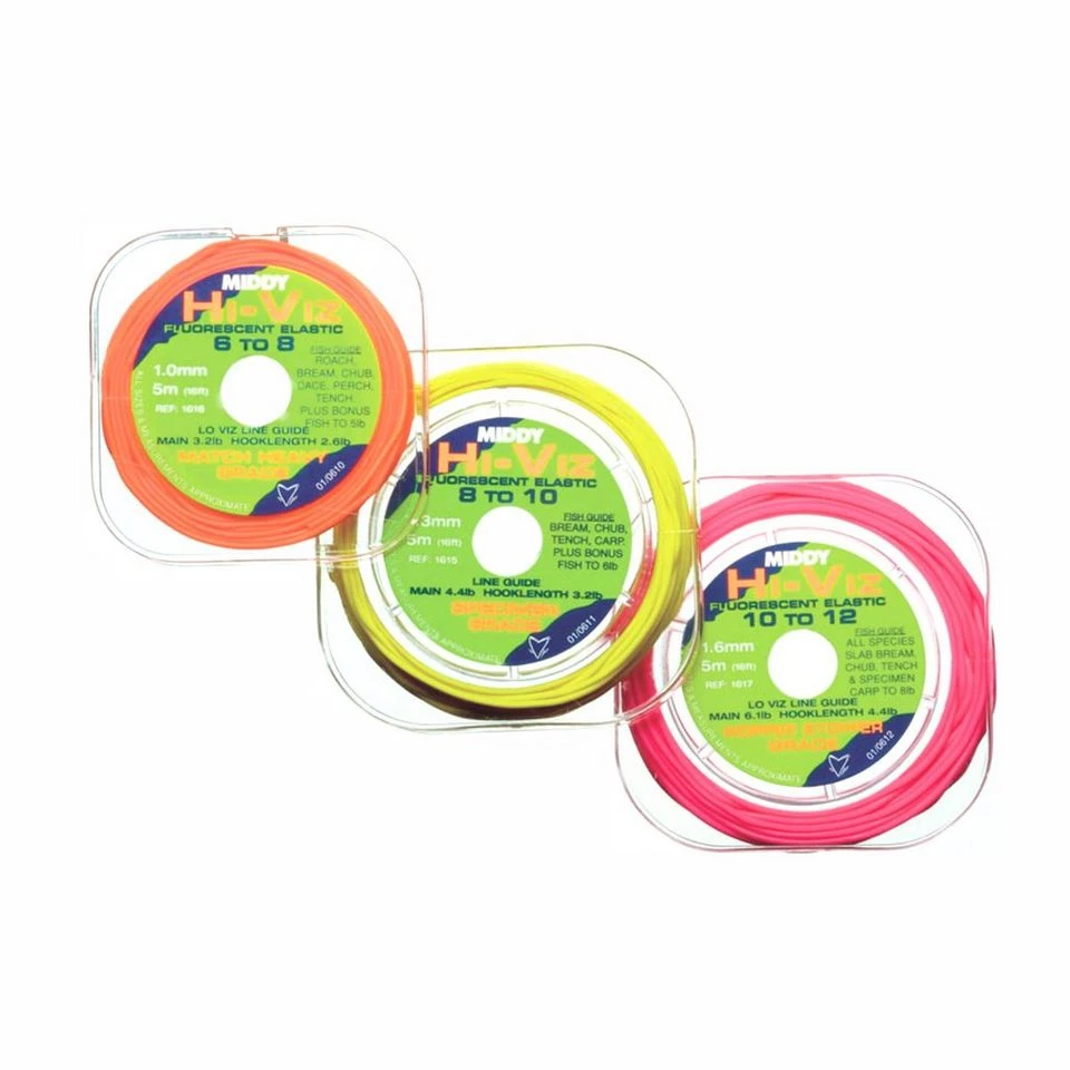 This Middy Hi-Viz Elastic is the number one seller in Europe and is ideal for commercial, monster carp! This 5 metre spool with 1 metre free is ideal for the keen angler. Because it has incredible stretch and is also fluorescent impregnated, it will keep season after season.Â