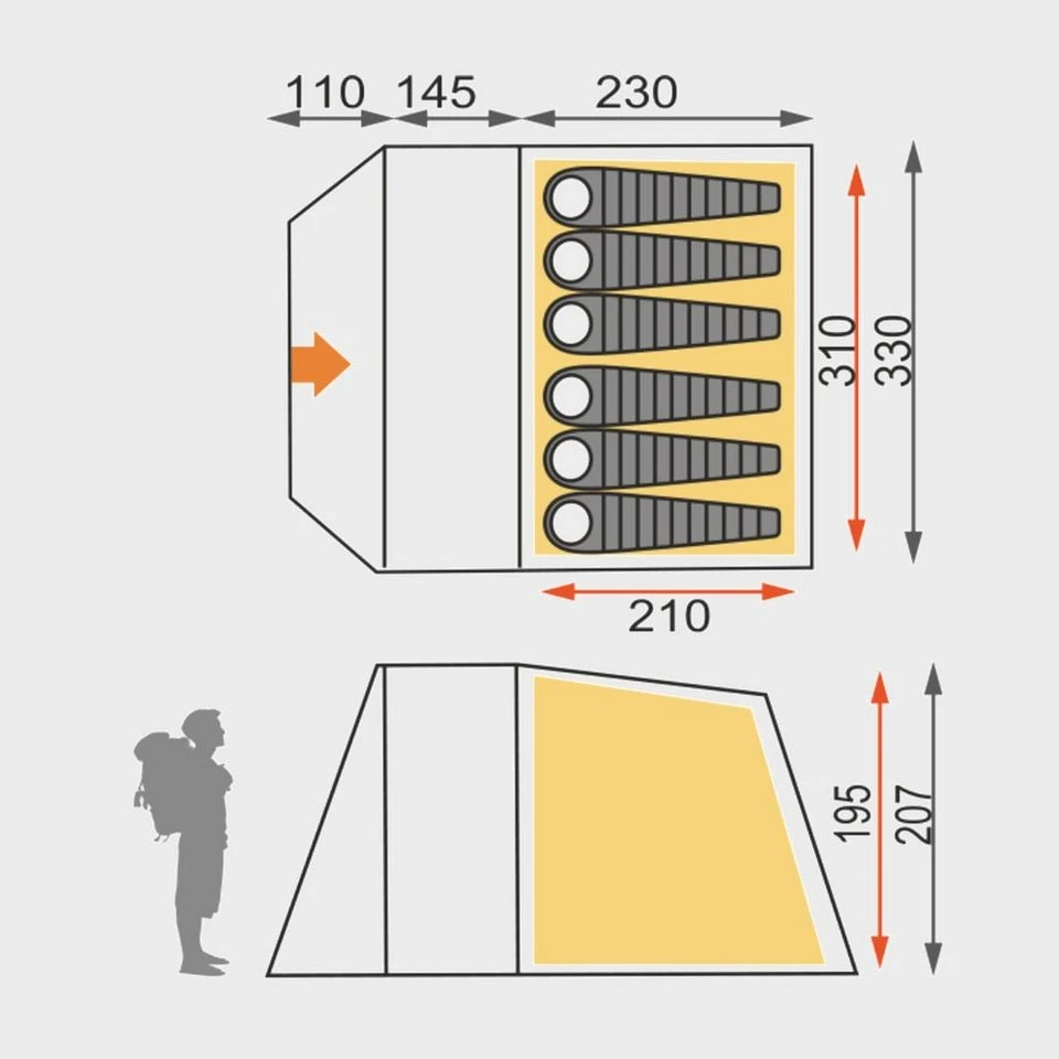 The Sendero 6 is a budget-friendly family tent from Eurohike. It’s easy to pitch and can sleep up to 6 people in the large bedroom section, while the porch area is ideal for storing your muddy boots. It features a fully sewn-in grounds sheet for ultimate waterproof protection from wet ground, whilst ventilation and window panels let plenty of natural light in and condensation out. The bugs will also be kept out by the sewn-in groundsheet.